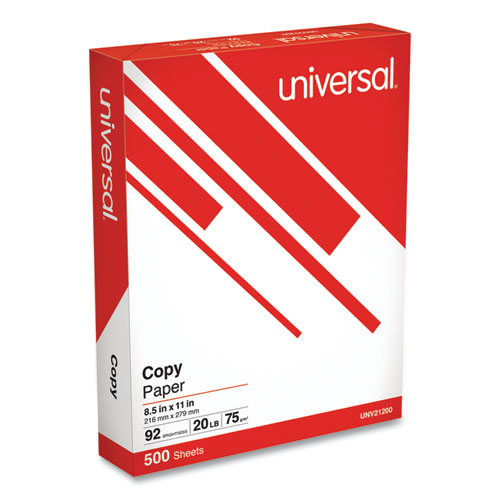 Universal Copy Paper, 92 Bright, 20 lb Bond Weight, 8.5 x 11, White, 500 Sheets/Ream - 92 Brightness - 20 lb Basis Weight - 75 g/m² Grammage - White - 500 Sheets - 500 Sheets per Ream